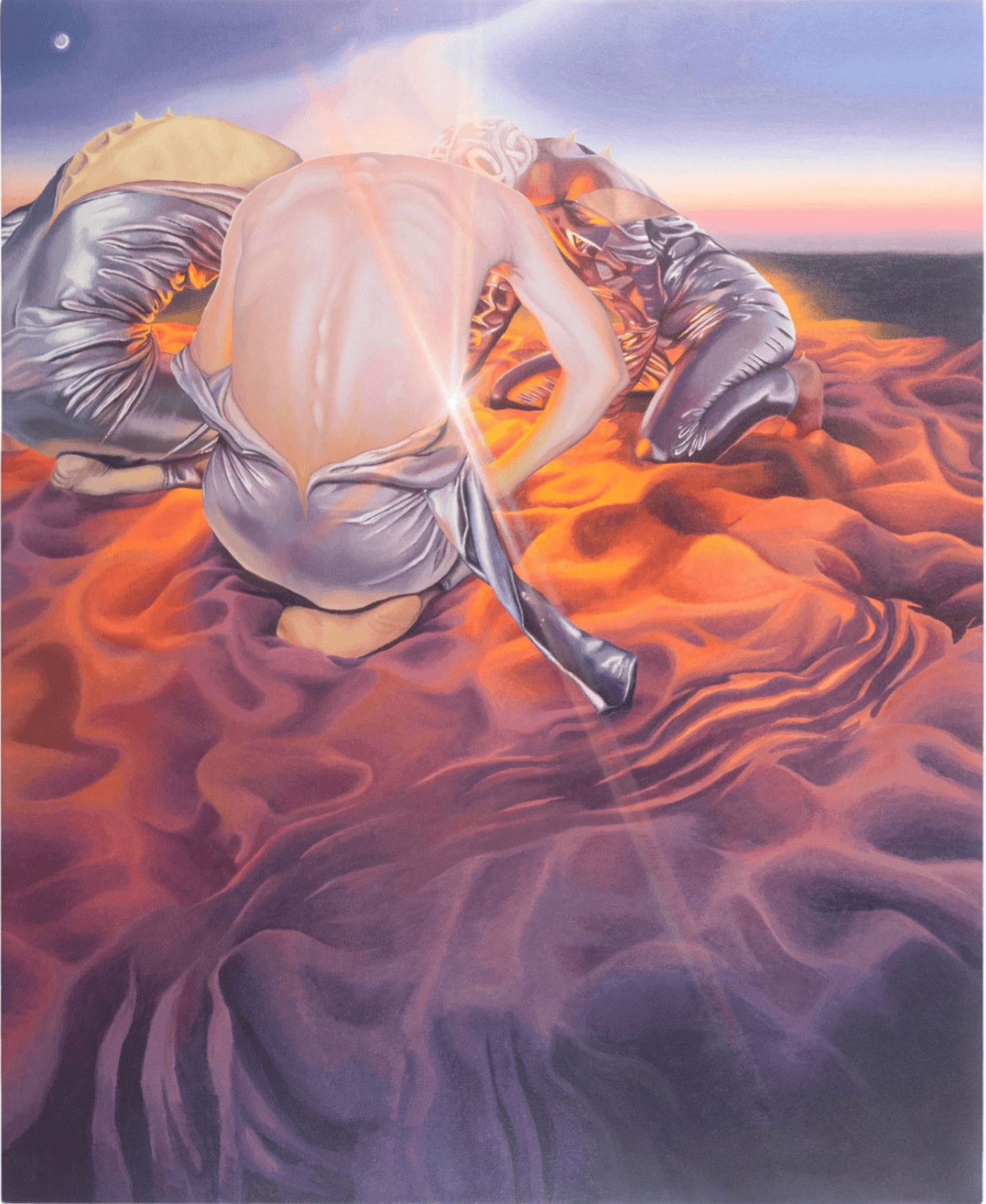 Beáta Hechtová představuje vlastní vizi postapokalyptického světa. Bytosti, které přežily, v něm budují novou společnost, vytvářejí kmeny, propojují se s přírodou a snaží se porozumět okolnímu environmentu. Autorka se věnuje hledání nového domova a znovunalezení sama sebe. Inspiruje se rozličnými kulturami a jejich rituály, mýty a legendami, které propojuje do osobitých rituálů možné budoucnosti. Zdůrazňuje principy spolupráce a kolektivního prožívání. Zvolené motivy označuje termínem „futuristický folklór“. Ve své figurální malbě zobrazuje náznaky postav, existujících na hranici mezi člověkem, zvířetem a duchem. Ačkoliv jim nevidíme do tváře, sledujeme je při různých činnostech či vzájemných interakcích. Oblékají futuristické kostýmy, anebo zůstávají průhledné. Nevnímáme je jako individuality, ale spíše jako zastupující symbol společnosti, přičemž pozorujeme jejich hybridní těla, akcentovaná drápy, trny či jinými fyzickými deformacemi. Snaží se adaptovat na nové prostředí a znovu definovat svou identitu.